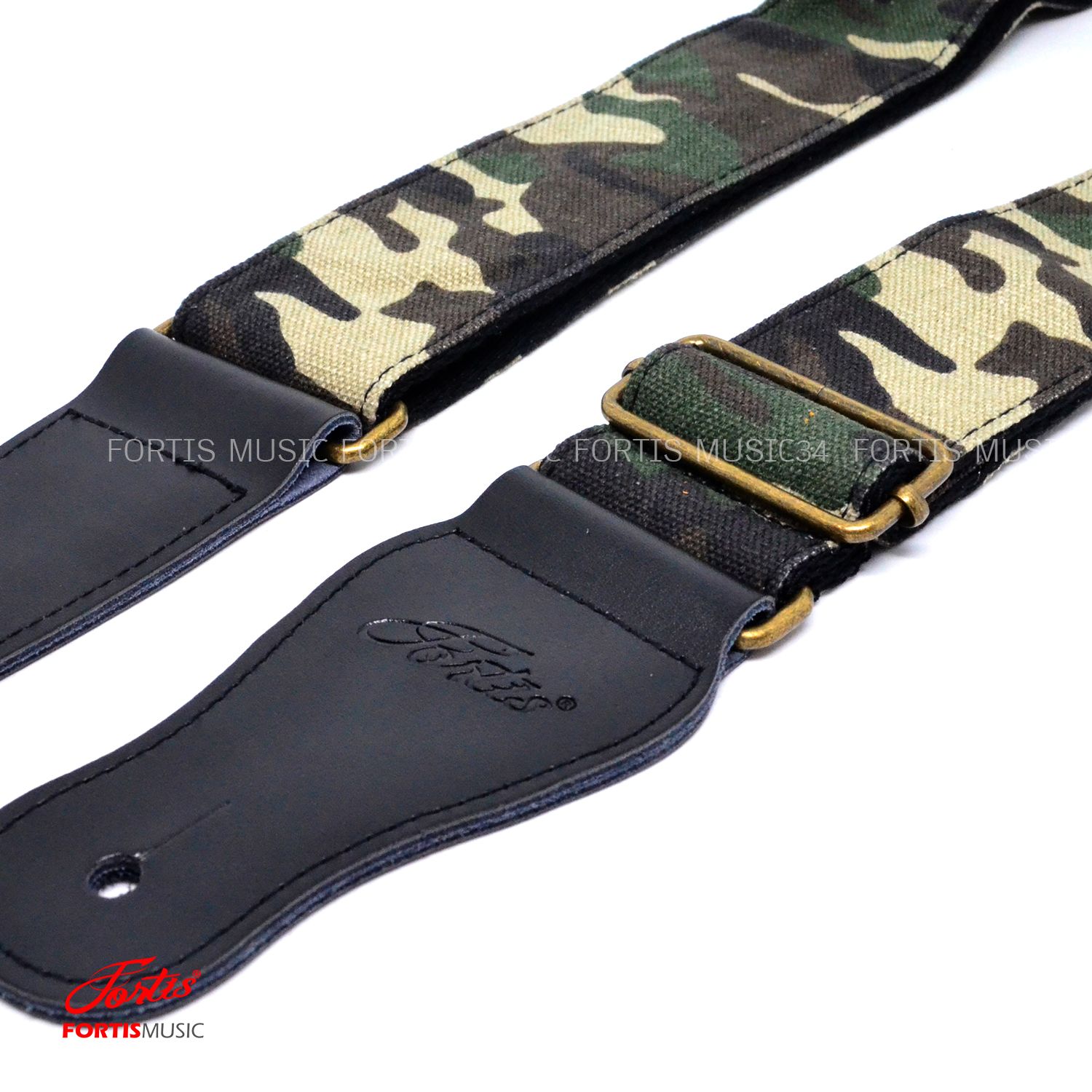 FORTIS Guitar Strap สายสะพายกีต้าร์ หัวหนังแท้ รุ่น FS-012 ARMY