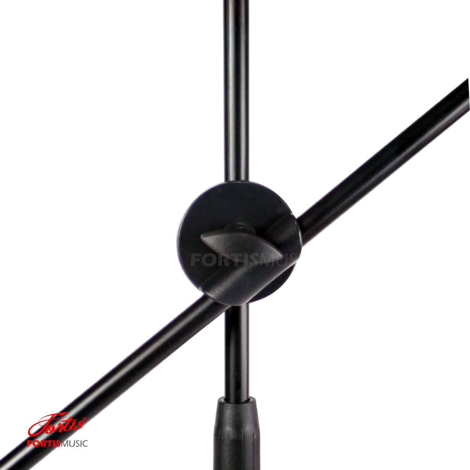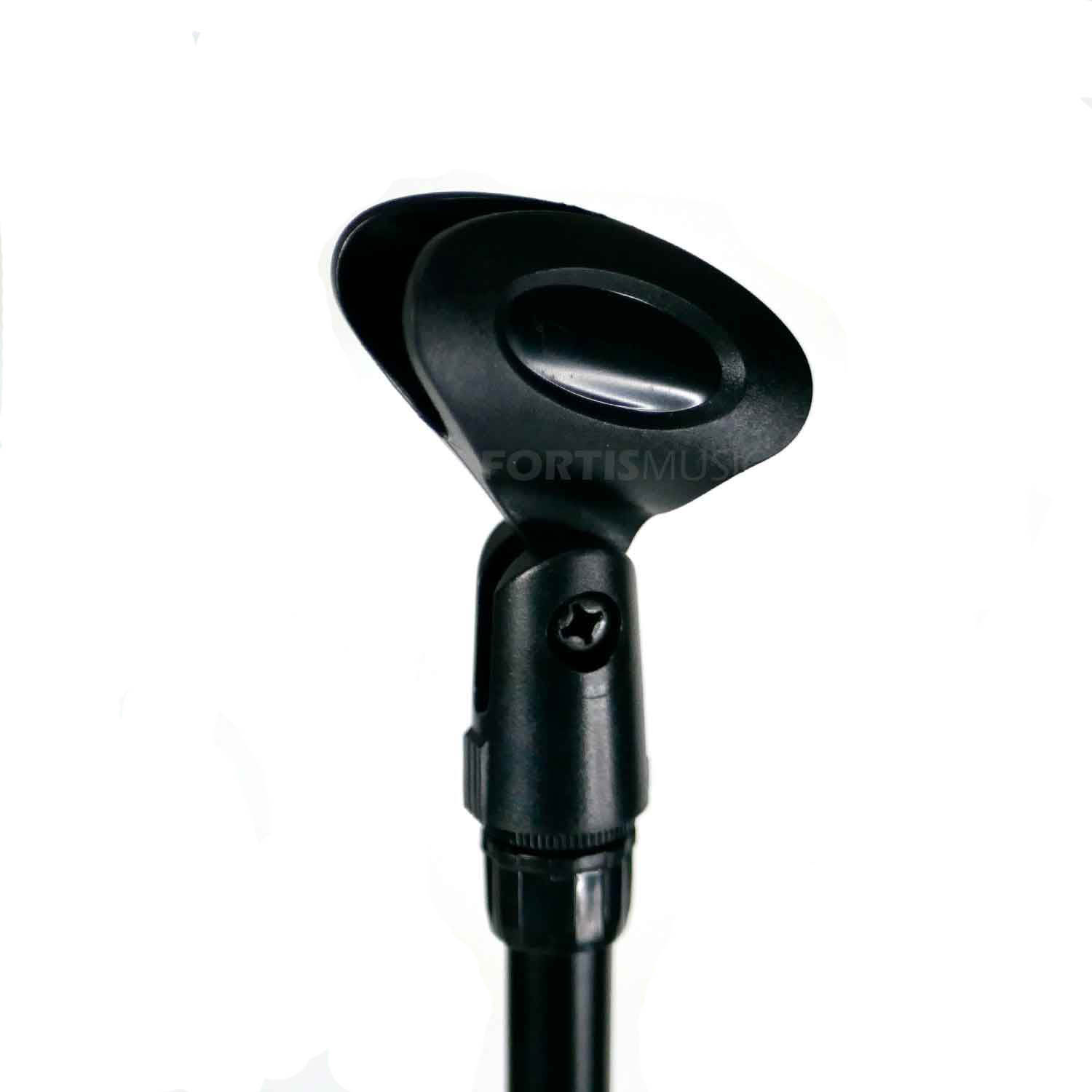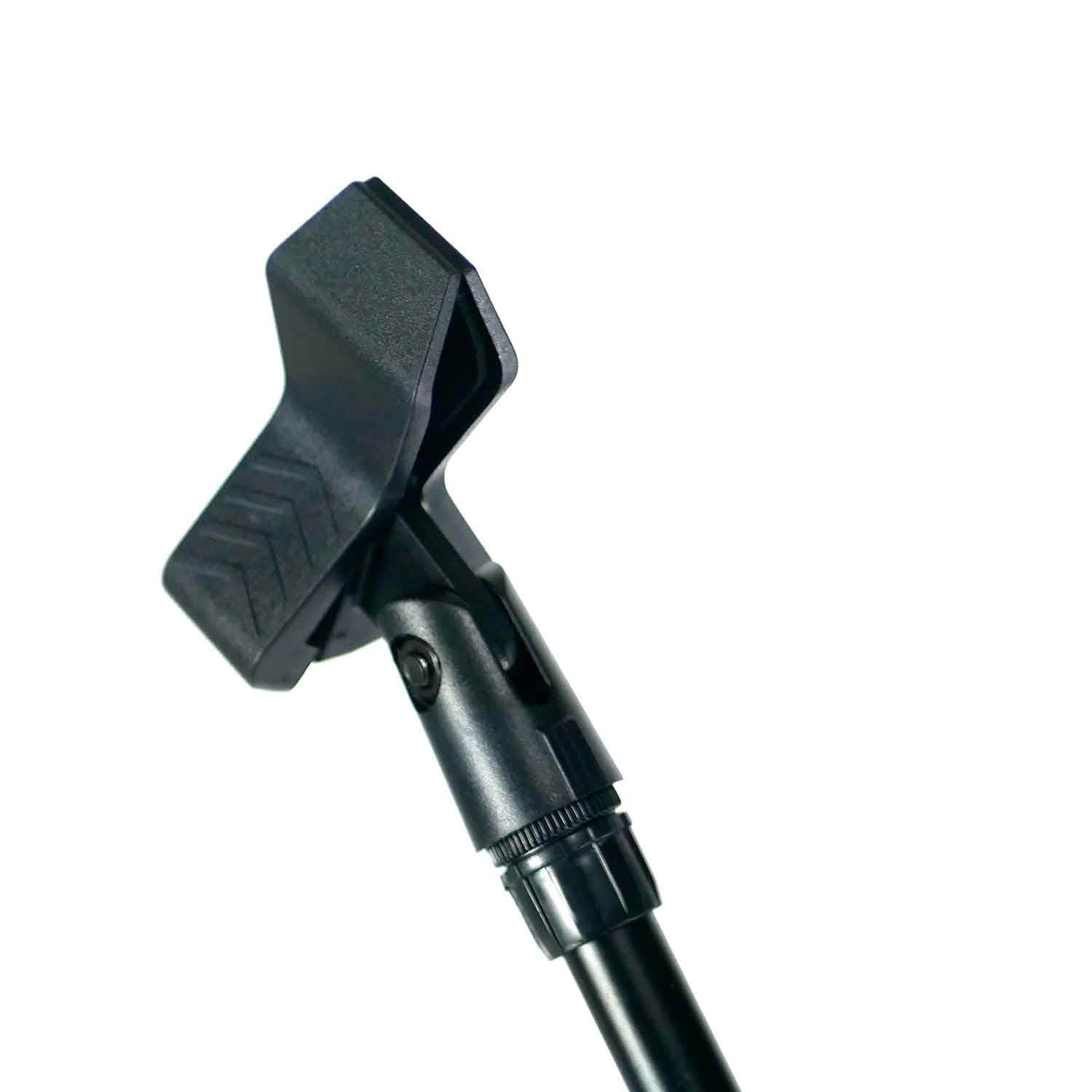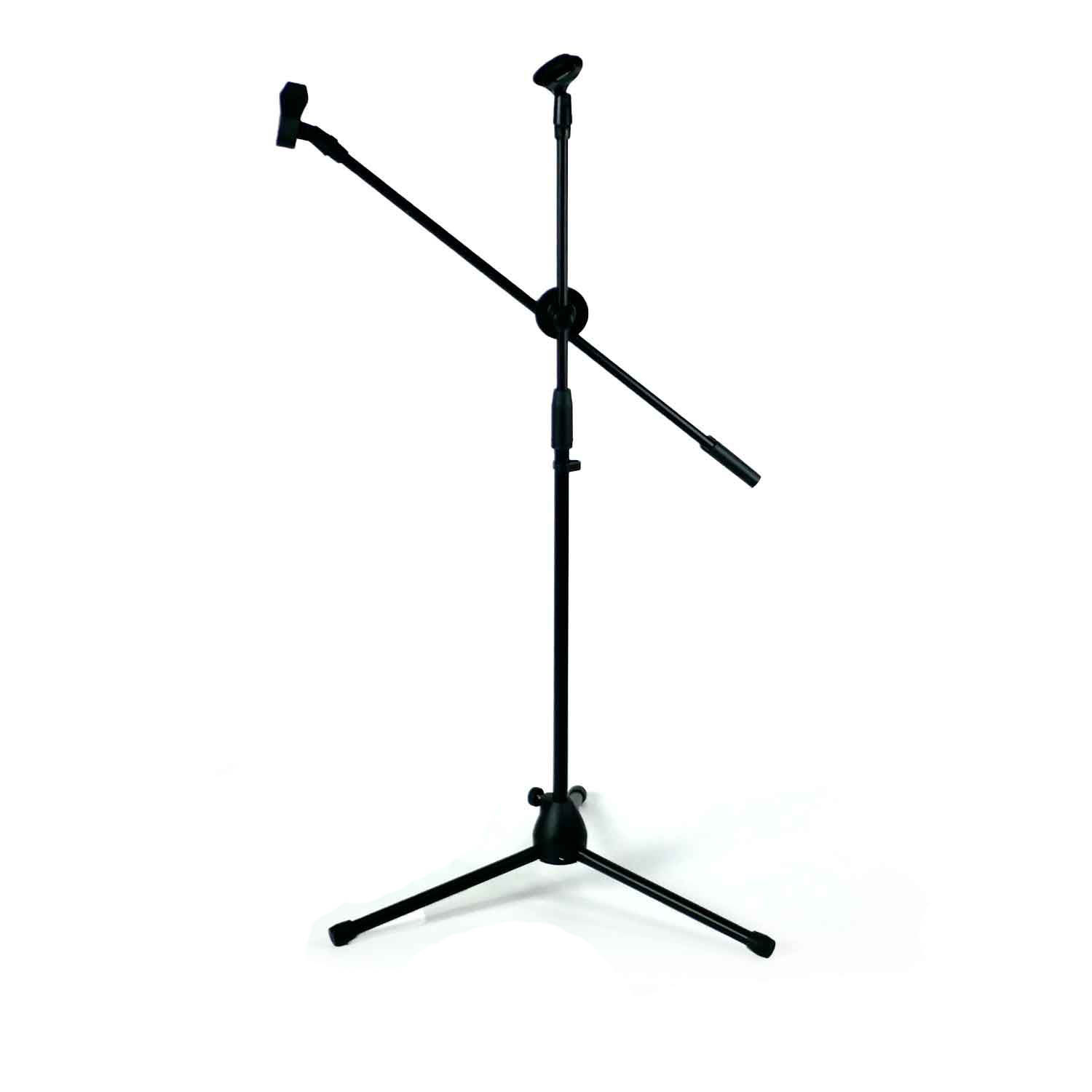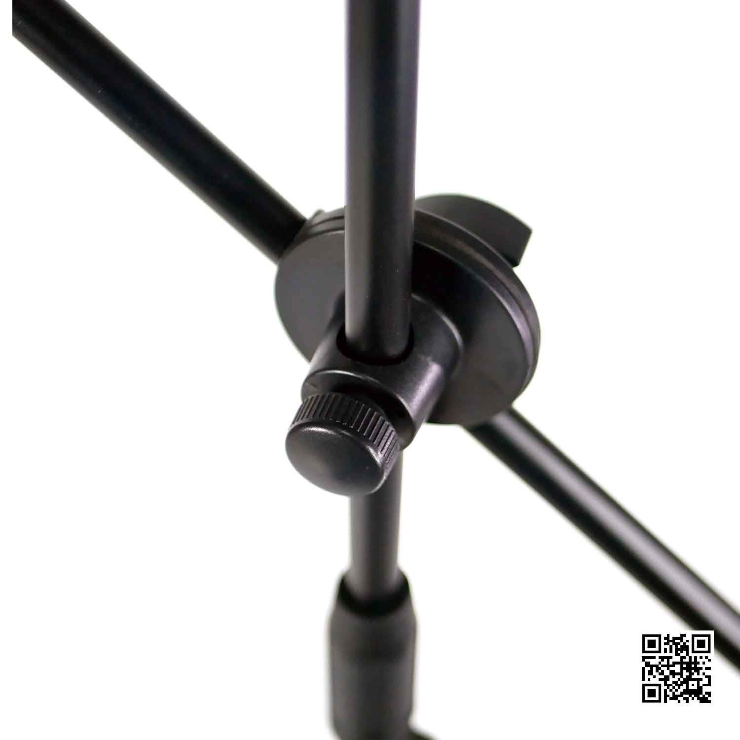 ขาไมค์เป็นแบบตั้งพื้น มีสีดำมี แกนบูม ใส่หัวไมค์ได้ 2 หัว